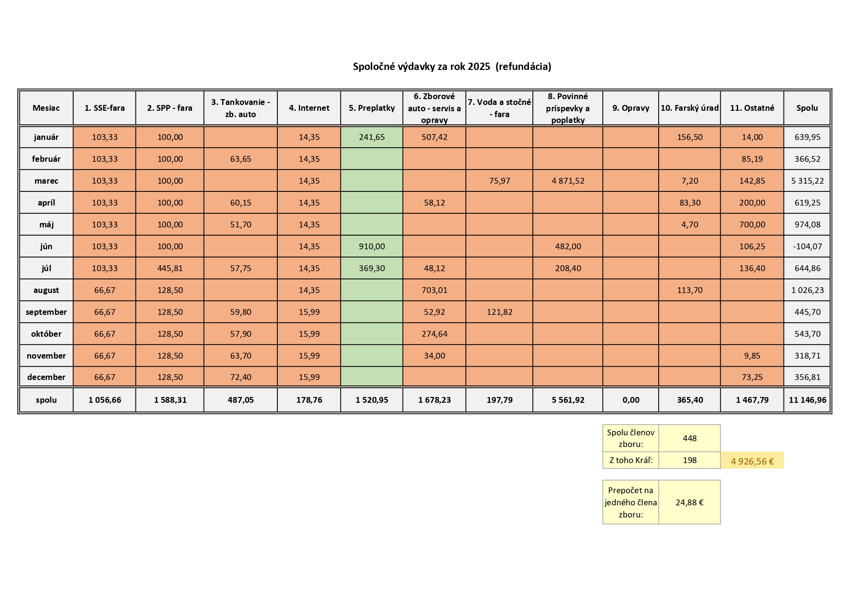 Tak ako sú výdavky spoločné, spoločné sú aj preplatky po vyúčtovaní reálnych nákladov. V januári a júli išlo o preplatky za elektrickú energiu rozdelené v rovnakom pomere ako náklady, pričom v júni bol započítaný aj príjem z tábora.
