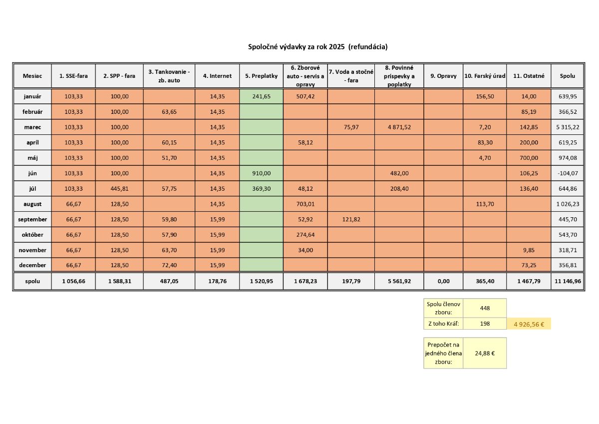 Komentár k spoločným výdavkom za rok 2025Prevádzka fary